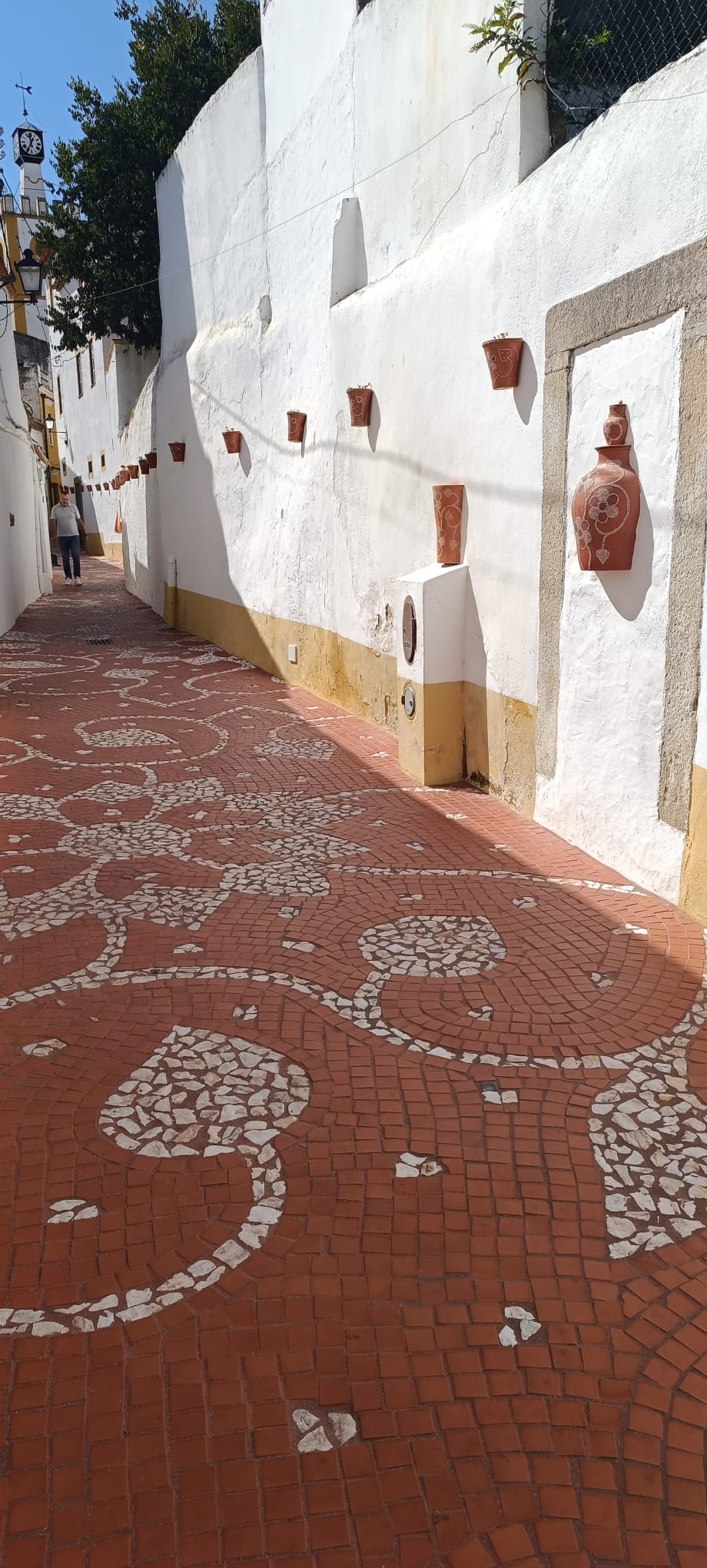 Uma charmosa e estreita rua pedonal que foi calcetada e ornamentada em homenagem à olaria pedrada de Nisa.